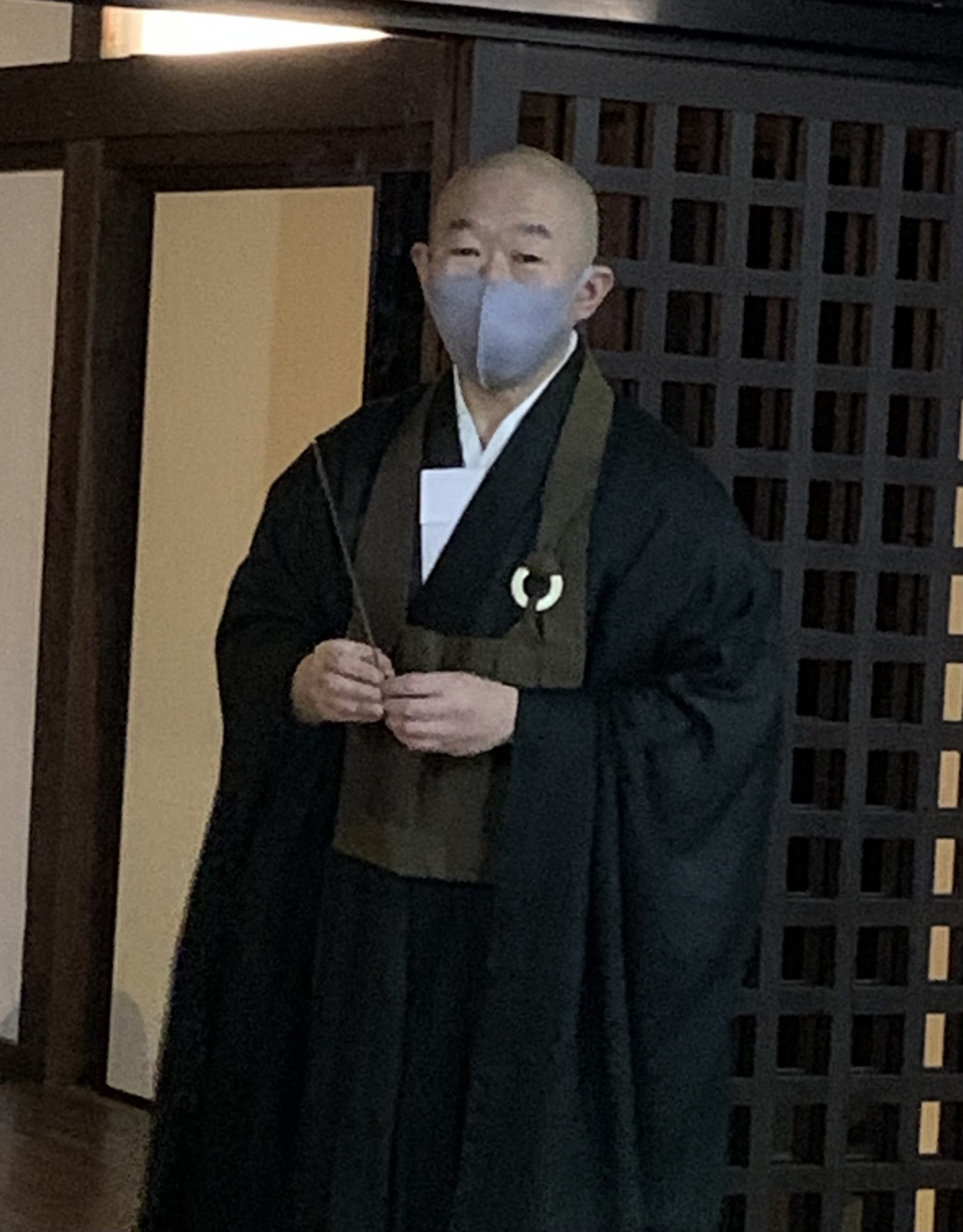 また、長勝寺には5棟の霊屋があり、この日は「明鏡台(めいきょうだい)」と呼ばれている満天姫の霊屋にもご案内いただきました。通常はお霊屋一体に入ることはできず、遠くからしか拝むことができませんが、この日は長勝寺第43代ご住職の須藤龍哉(すとうりゅうさい)氏の案内でお霊屋の扉を開け、内部に収められている石造無縫塔を前に読経される中、ツアー参加の12名が焼香をしました。満天姫が徳川家康の養女として嫁いでいることから、霊屋には葵の紋が飾られていました。内部天井に描かれている龍の絵の色鮮やかな様子も間近で見ることができました。