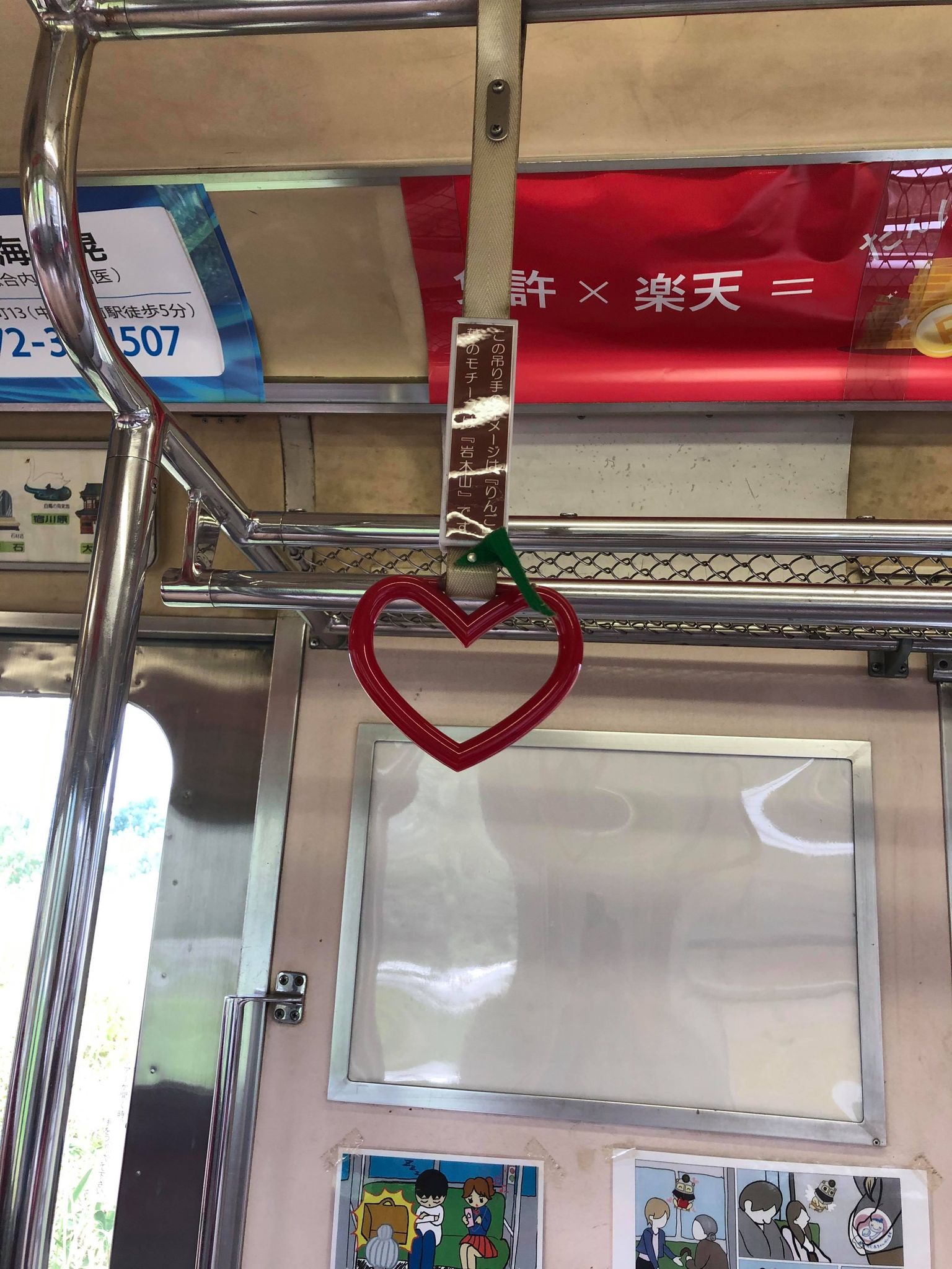 一車両にひとつあるハート型のつり革。