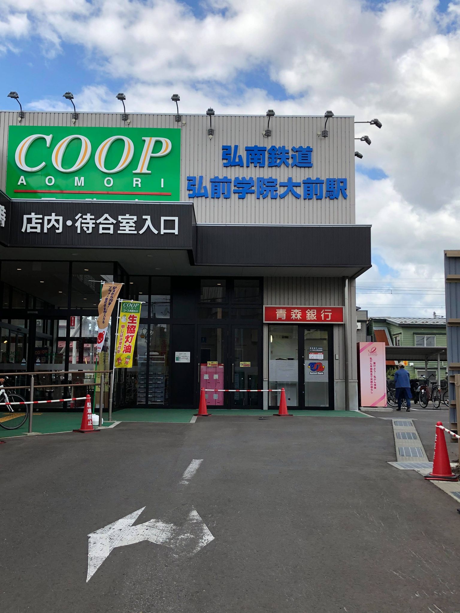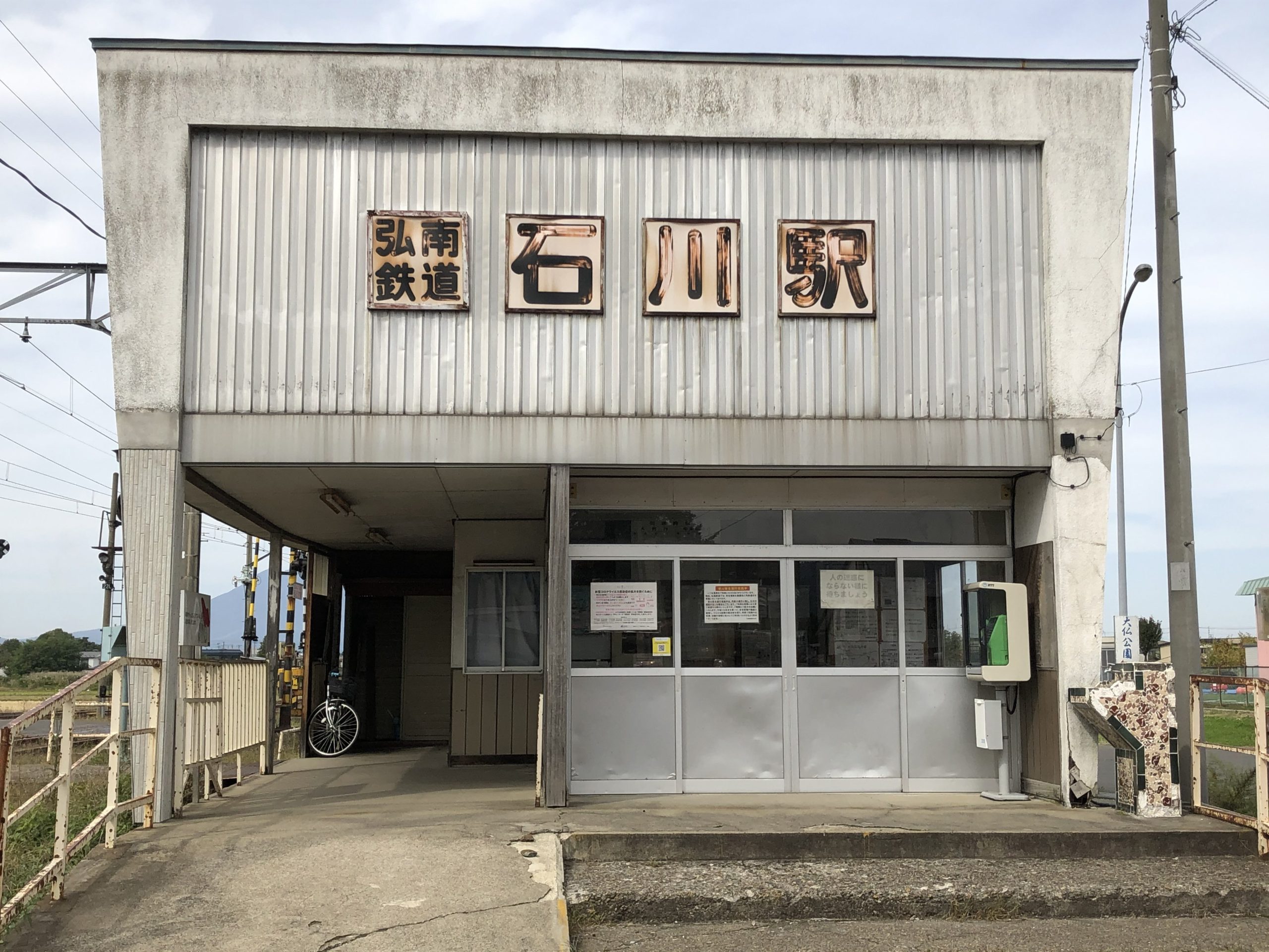 最初に始発から2駅約4分の、弘前学院大前で下車。