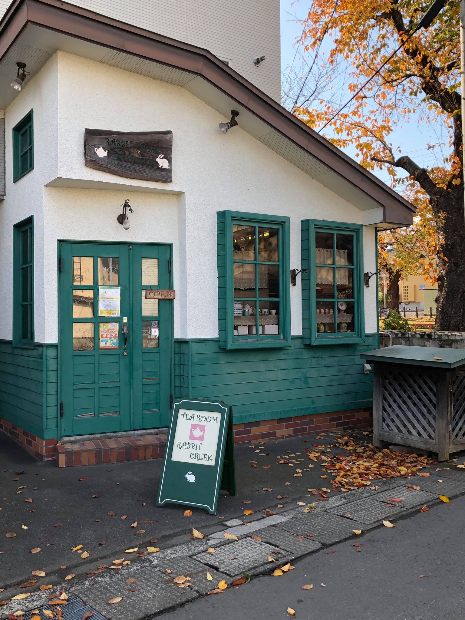 駅を出て、まっすぐ進みます。徒歩でも1分の場所に喫茶店、「ラビット・クリーク」があります。