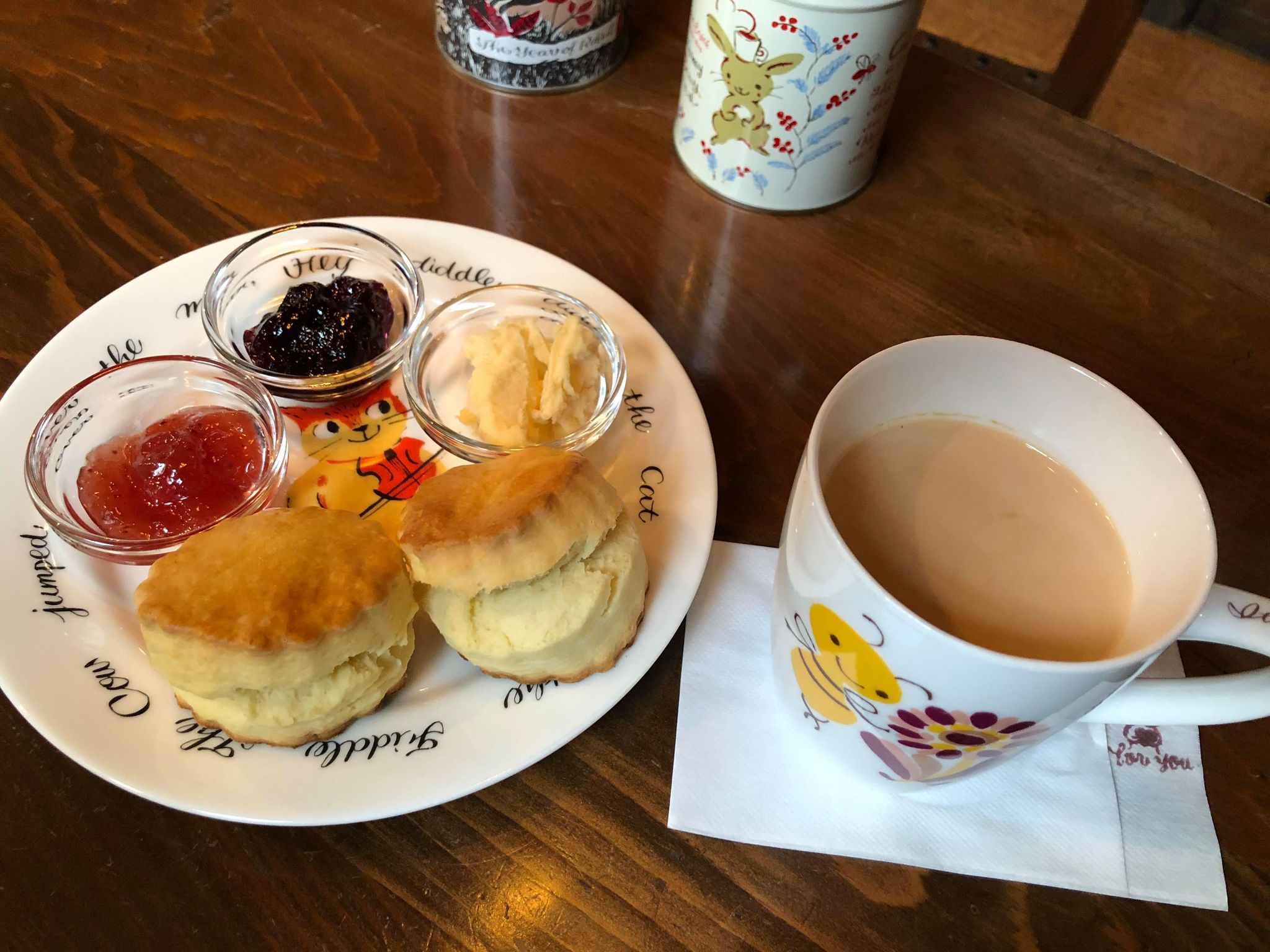 この店の、スコーンセットが人気。ロイヤルミルクティーを選んでみました。