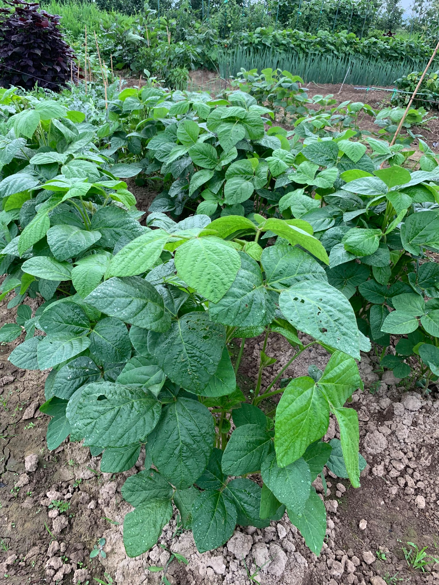 津軽の在来種の毛豆(けまめ)も作ってみました。毛豆は、北海道で見ていた枝豆とは違い、1メートルくらいの背丈まで大きく育ちびっくりです。1袋の種を全部まいたので、たくさんできてしまい、実が入った9月頃には連日毛豆を茹でて食べていました。
