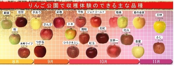 収穫できるりんごの品種はこちら