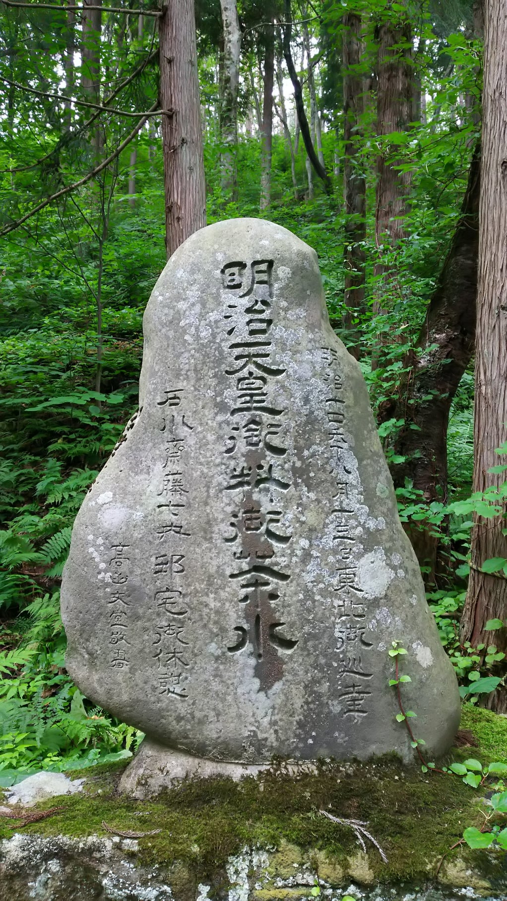 名前は、1881(明治14)年、明治天皇が東北巡幸の折に石川で休憩され、この水でお茶を召されたことに由来します。地元では「ナガサカの水」「お茶の水」と呼ばれ親しまれています。1987(昭和62)年に「青森県私たちの名水」に認定されました。(引用:弘前観光コンベンション協会 ひろさき読解本より)