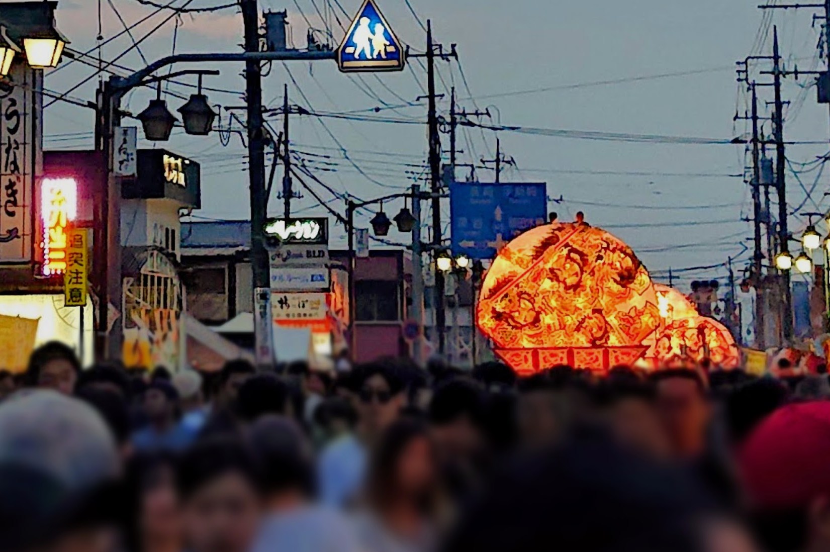 尾島ねぷたまつりは、運行ルートと観客側の区切りがないのが特徴のひとつです。弘前ねぷたまつりのように沿道に座って見ることはせず、歩きながらねぷたを見ることができます。高さ7メートルに及ぶ山車もある中で、間近で見るねぷたは圧巻の一言。囃子の音色が響き渡る中で、私は尾島ねぷたの躍動感と迫力に圧倒されていました。