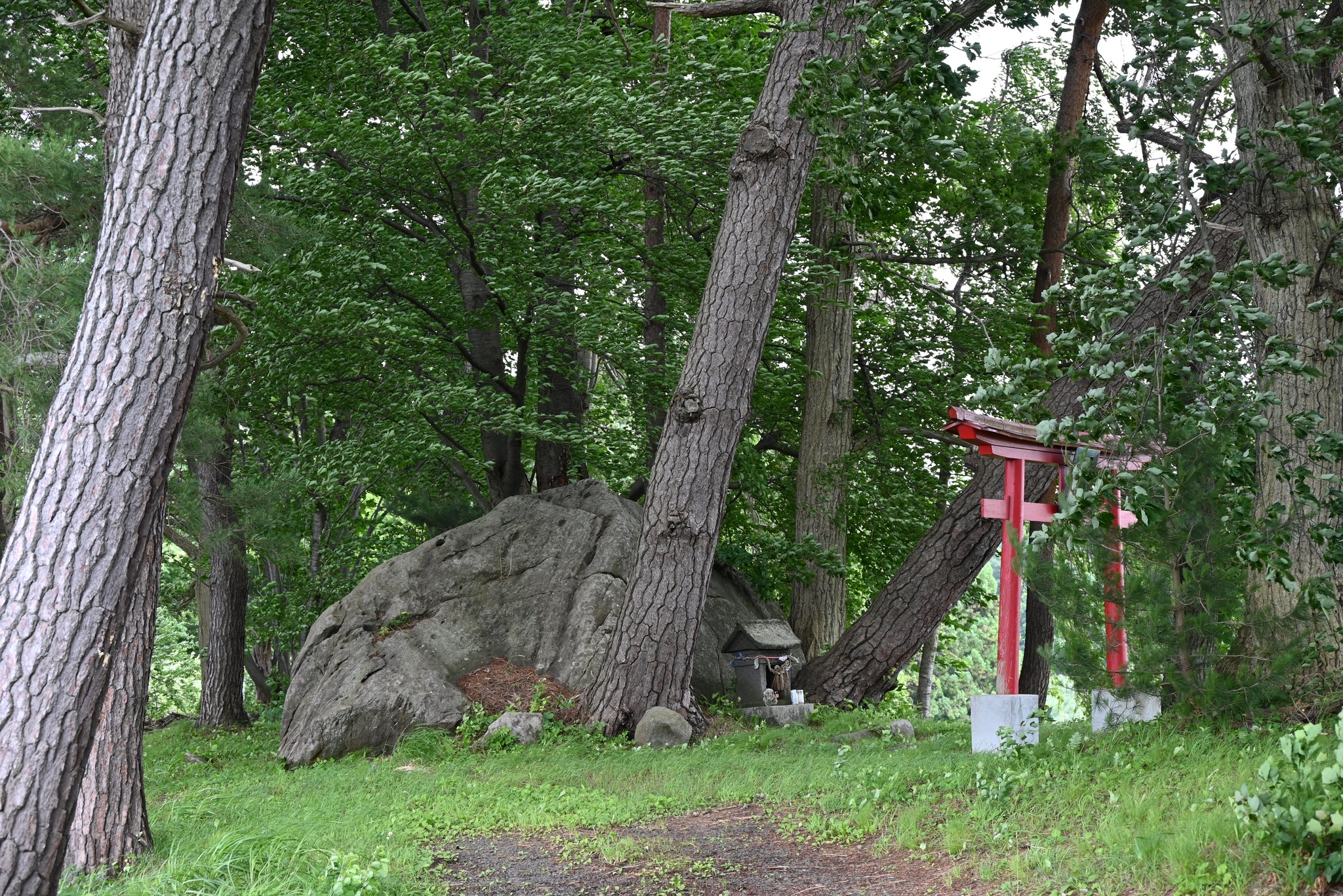 「大石明神」もその一つ。現在、岩木山は林の陰に隠れてしまっていますが、「岩木山神社と岩木山頂を見渡せる位置で、この祠堂(しどう)を通して岩木山を拝んだ」という言い伝えがありました。相馬の人々は大石そのものを信仰対象としたのではなく、人と岩木山をつなぐ媒体として祀(まつ)っていたのではないかと考えられます。