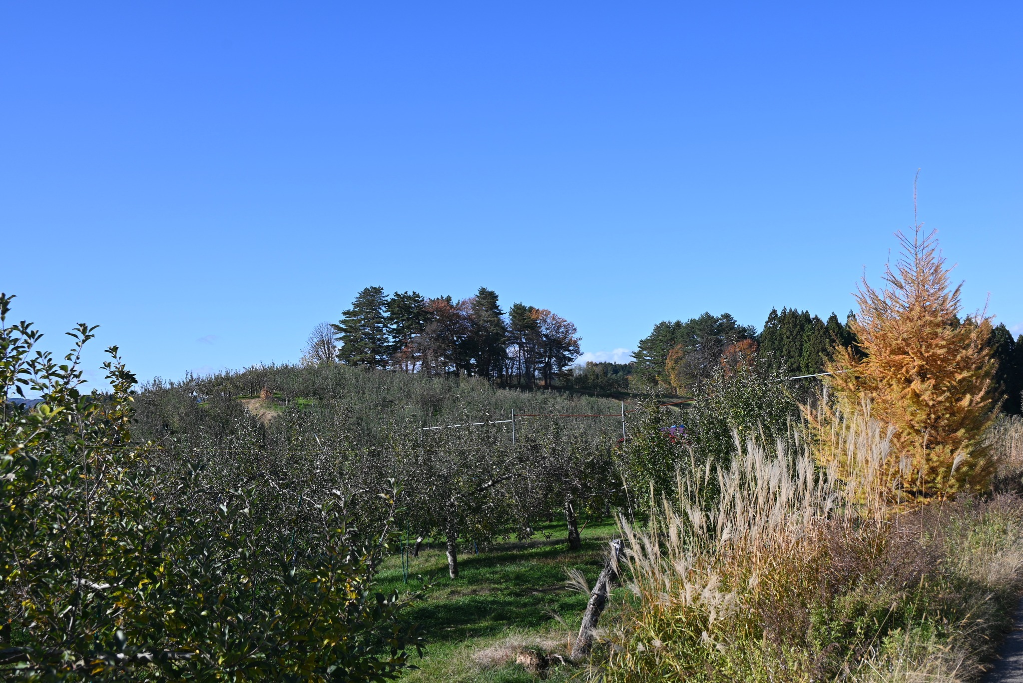 その後、耕運の機械化により一帯は急速にりんご園になり、現在のようにりんご園の中に「大石明神」が残る景観になりました。