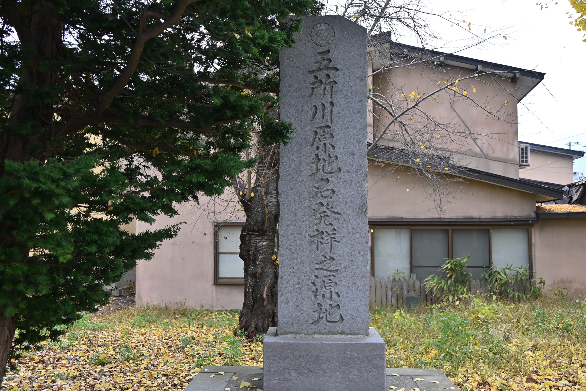 境内に入って、まず目に留まったのが「五所川原地名発祥之源地」と書かれた石碑です。