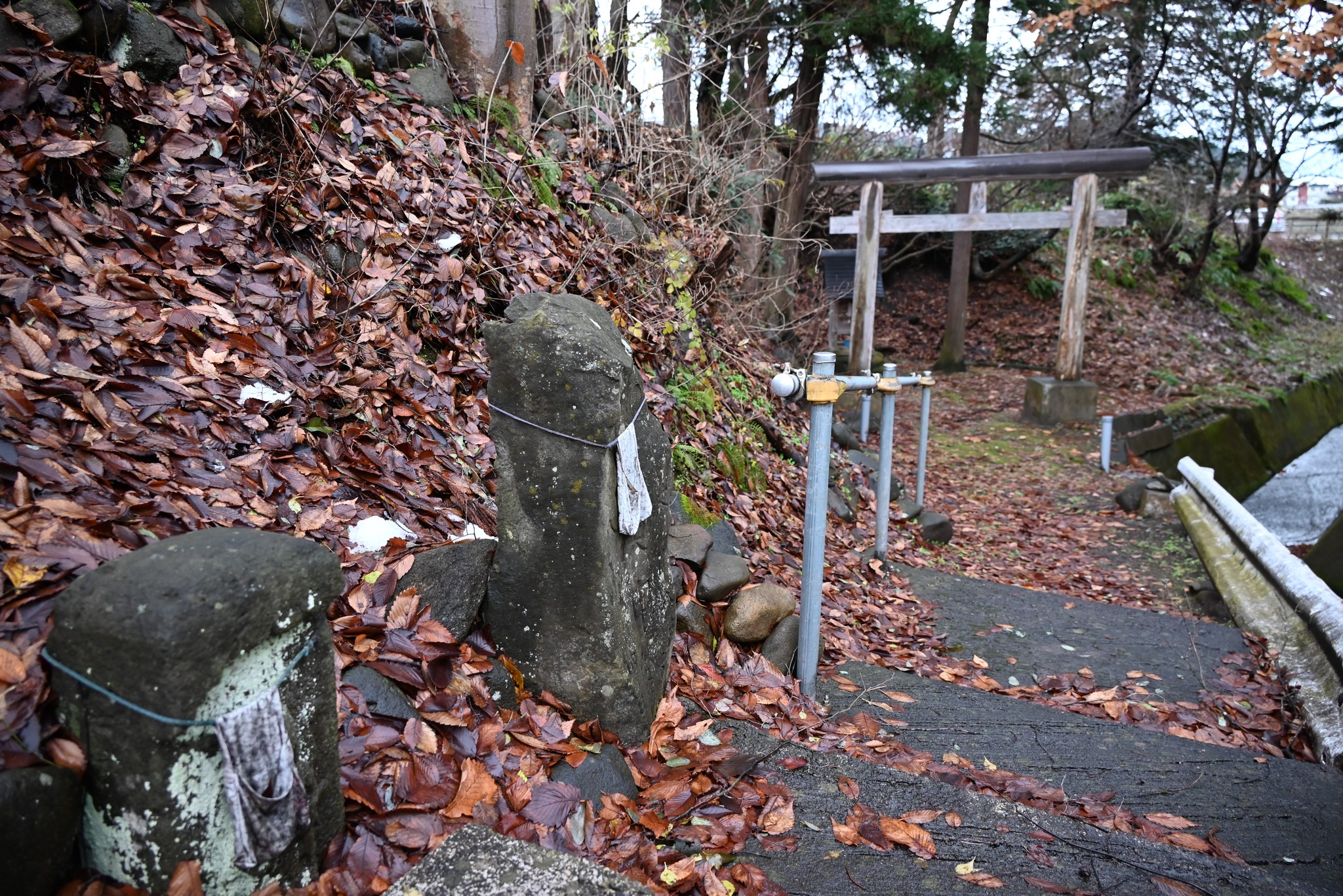 そこで、坂上田村麻呂は別の場所に再葬することを決断。遺体を現在の相馬地区・湯口に移し、「自分の首の翡翠(ひすい)の勾玉(まがたま)を奉じ、手厚く葬り、四方を石で固め、上に大石の押さえに敷石を重ね」、さらに、石戸権現と合祀(ごうし)したところ、メノコの厄は鎮まったそうです。その場所が現在の石戸神社だといわれています。