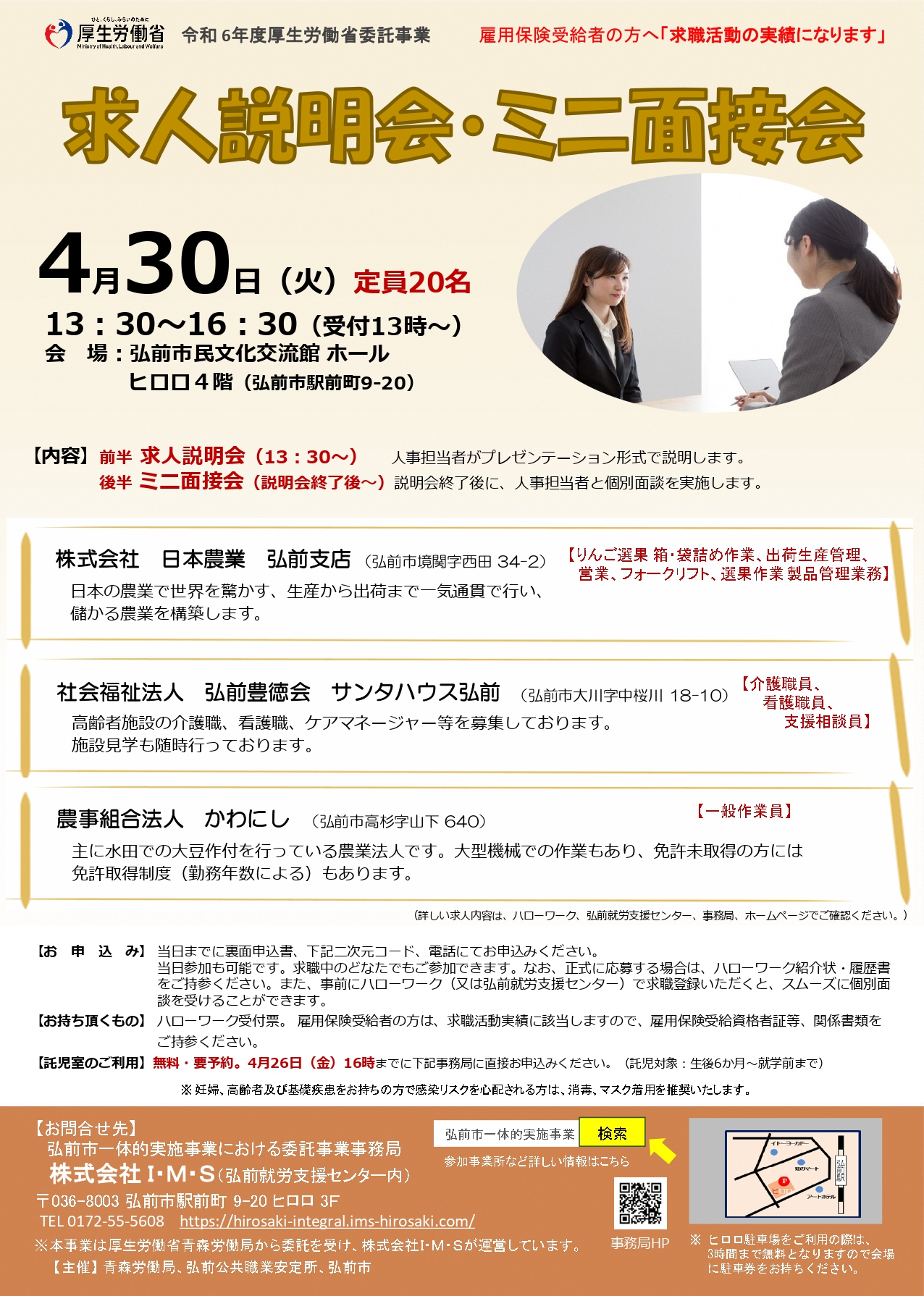 【仕事情報】求人説明会・ミニ面接会【4月30日】