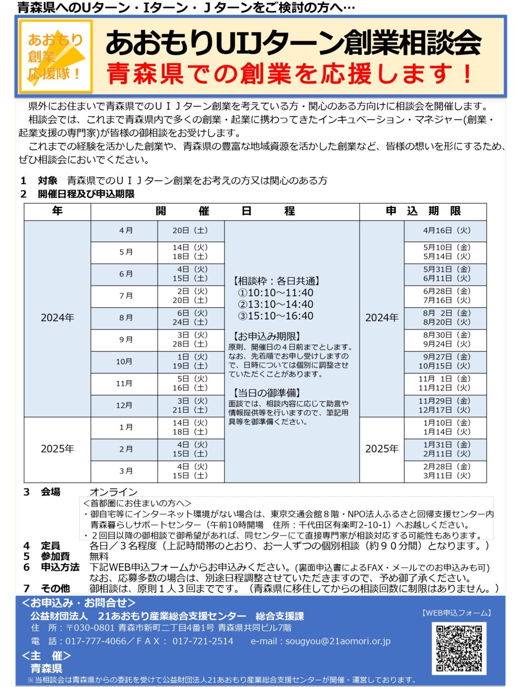 首都圏にお住まいで青森県でのUIJターン創業を考えている方・関心のある方向けに相談会を開催します。