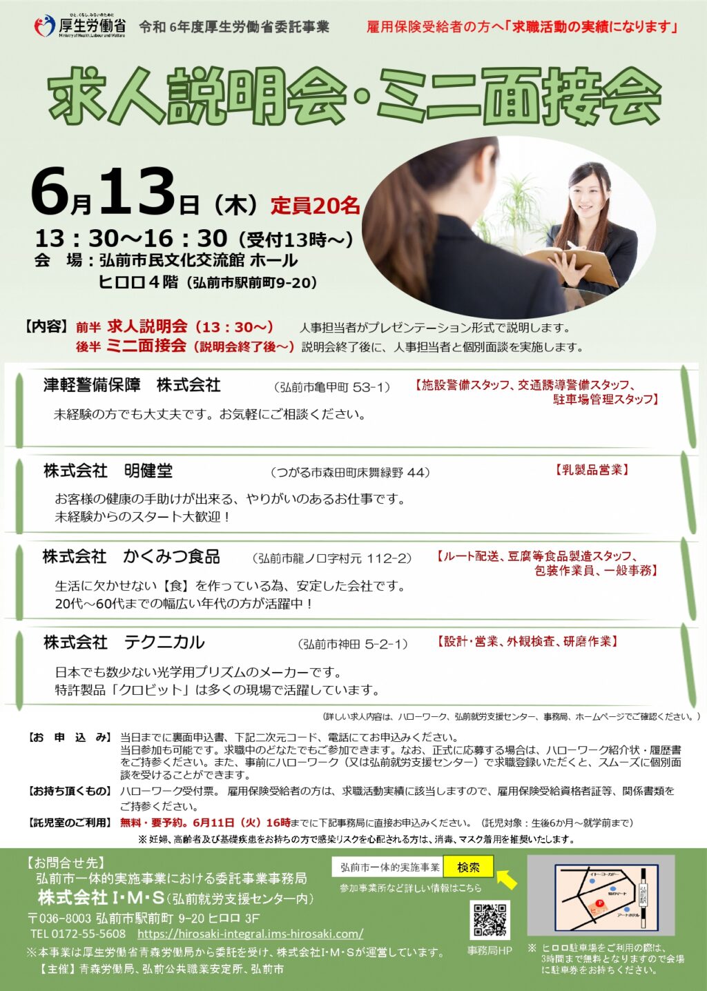 青森労働局、ハローワーク弘前、市(商工労政課、ひろさき生活・仕事応援センター)主催による、求人説明会を開催します。