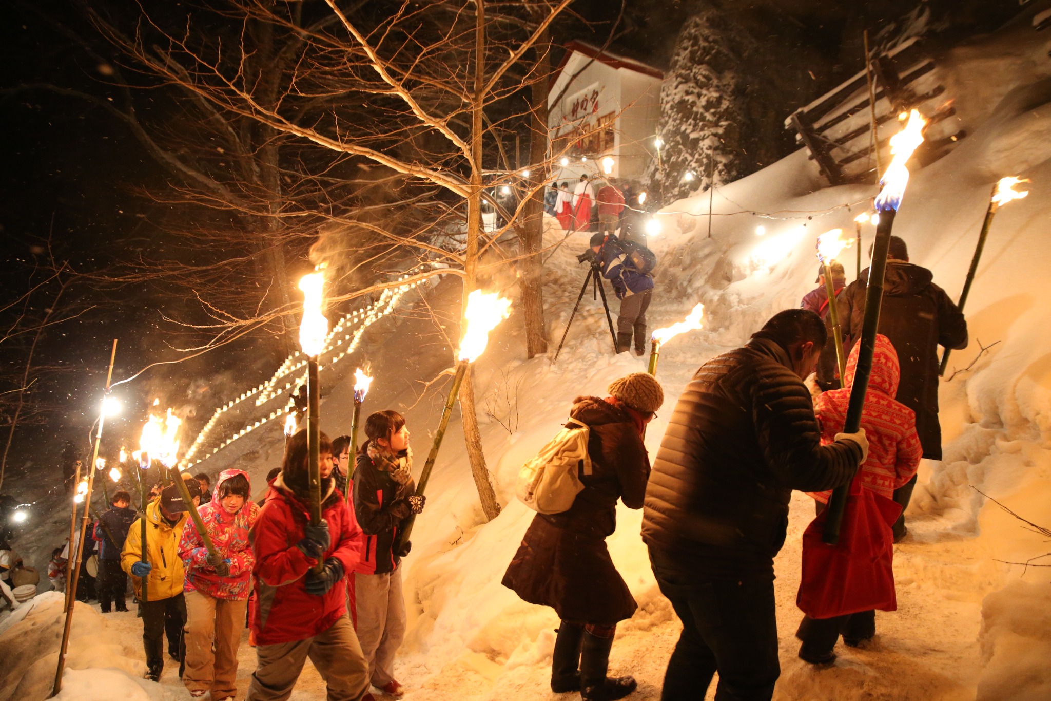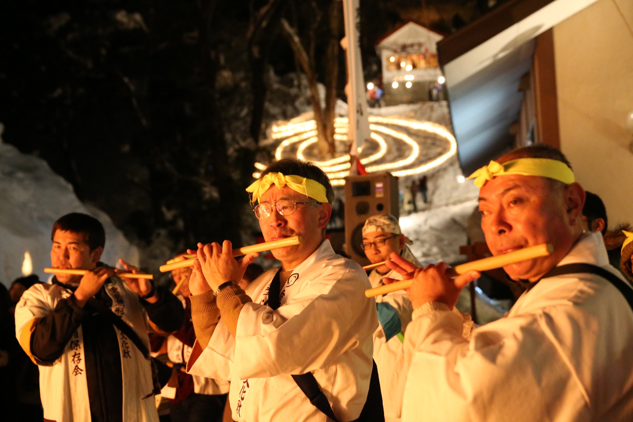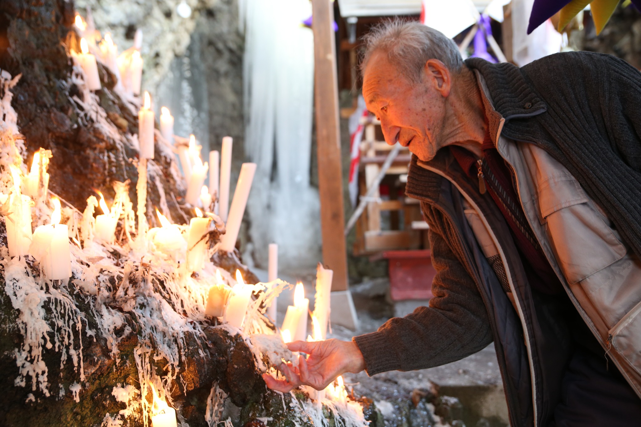 時代とともに変化を遂げながらも、五穀豊穣や家内安全などを祈るとともに、ろうそくの蝋(ろう)の溶けた形や岩屋堂内の氷柱の大きさから、その年の吉兆を占う行事として続けられてきました。