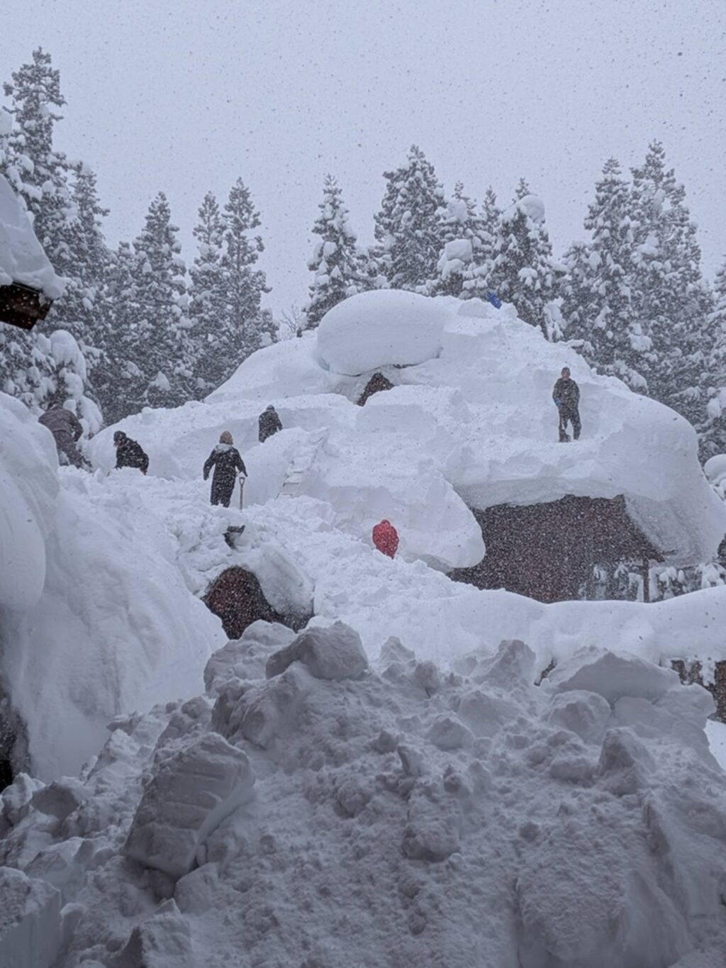 大人が数人で約3時間雪かきをしてやっとこのくらいです。屋根が見え始め、建物への負担もだいぶ減ったんじゃないかと思いますが、自然の脅威というか雪の多さを本当に実感する3時間でした。