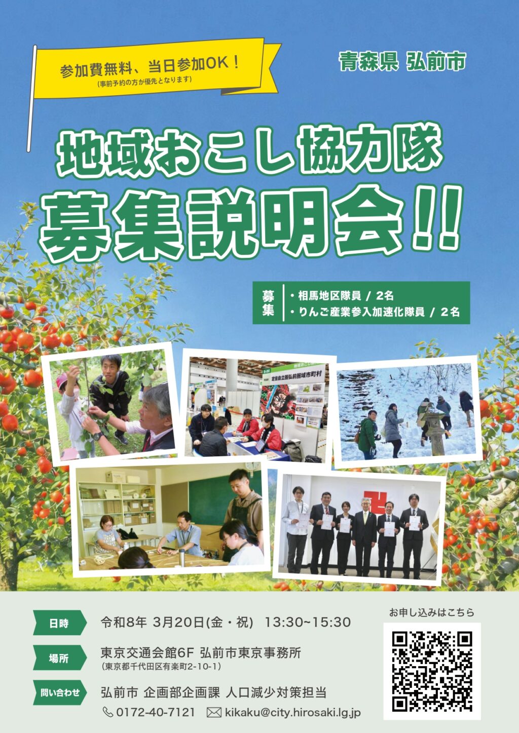 りんご地域おこし協力隊チラシ 青森県弘前市では、次世代のりんご産業を担う地域おこし協力隊を募集します。 弘前...